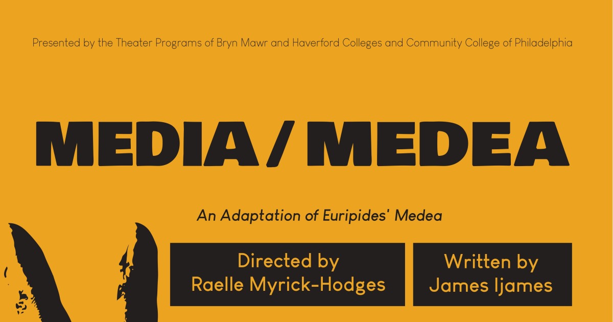 The Bi-Co Theater Program presents Media/Medea an exciting new adaptation of the classic Greek tragedy written by Pulitzer Prize winning local playwright James Ijames and directed by internationally recognized director and founder of local Philadelphia company Azuka Theatre, Raelle Myrick-Hodges. The performance will feature Barrymore Award and Haas Award winning actor Akeem Davis working alongside the student actors. Performances April 13–16 at Bryn Mawr College and 20–22 at Community College of Philadelphia.