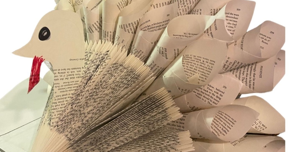Upcycling old books into art: turkey edition! Drop by and learn how to upcycle old books into turkey centerpieces for your Thanksgiving Feast! Everyone welcome! No experience necessary and all supplies will be provided.