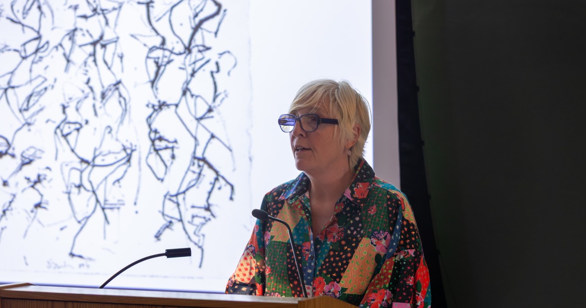 Molesworth began her talk by reflecting on her first curatorial job as curator of contemporary art at the Baltimore Museum of Art, where she learned valuable lessons early on, including when an exhibit designer kindly asked if she could make some minor adjustments to her arrangement of the pictures in her first assigned installation.