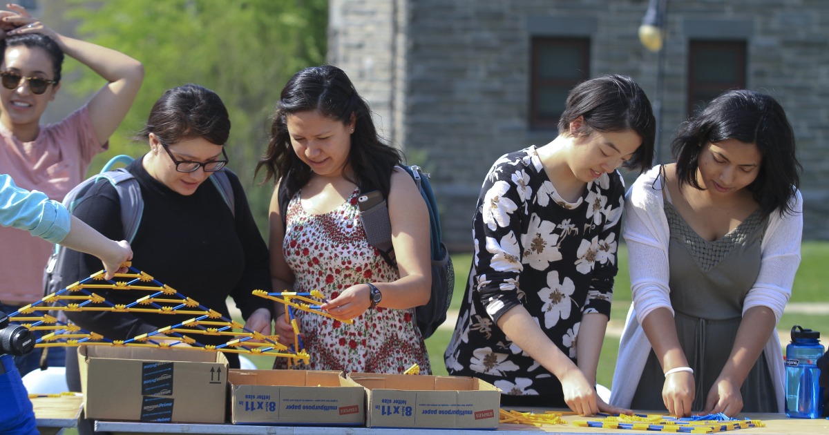 With help from the Bryn Mawr community, Professor of Mathematics Victor Donnay and visitors to the Wagner Institute of Science were able to build a record-breaking Sierpinski triangle last Sunday.