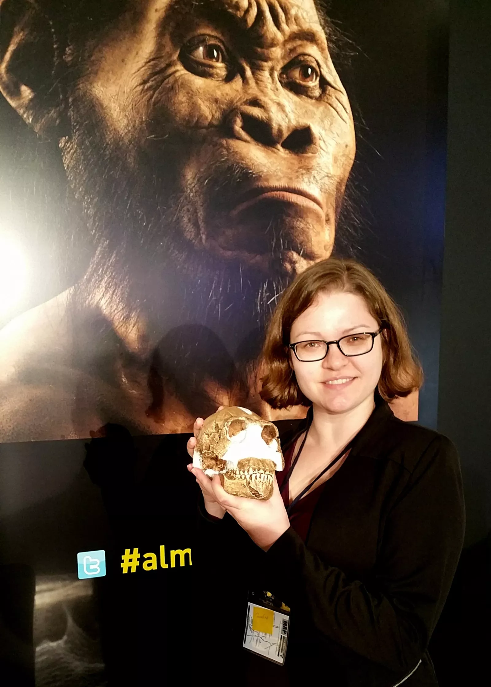 In 2014, she attended the Rising Star Workshop at the University of the Witwatersrand (Wits) in Johannesburg, South Africa. There, she and a large international team of researchers sorted through the 1000s of fossils that came out of the cave to figure out what they were, how they fit together, how many individuals were represented, and what species they were.