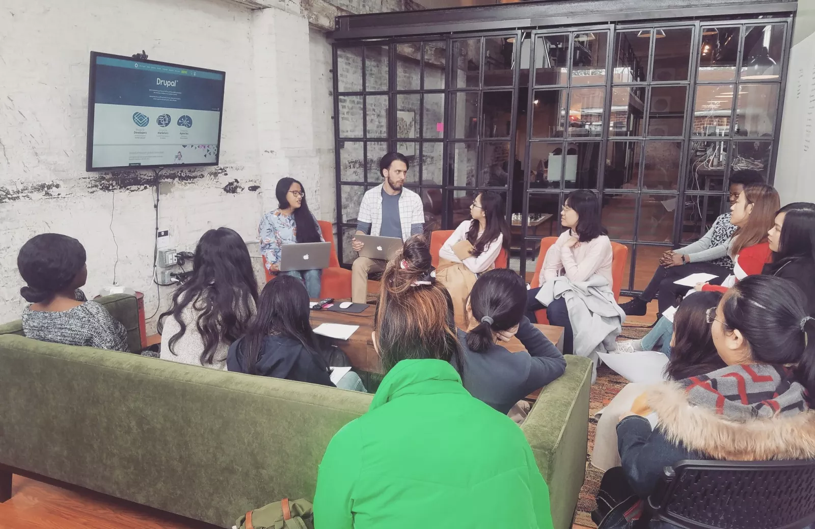 For the first two days, our learning continued during lunch, when alumnae and professionals in web design and development shared their experiences in landing web jobs, developing a wide range of competencies, and keeping up with new technologies. Professional panels are essential to career exploration, as they provide students with the opportunity to get first-hand advice from experts in the workforce.