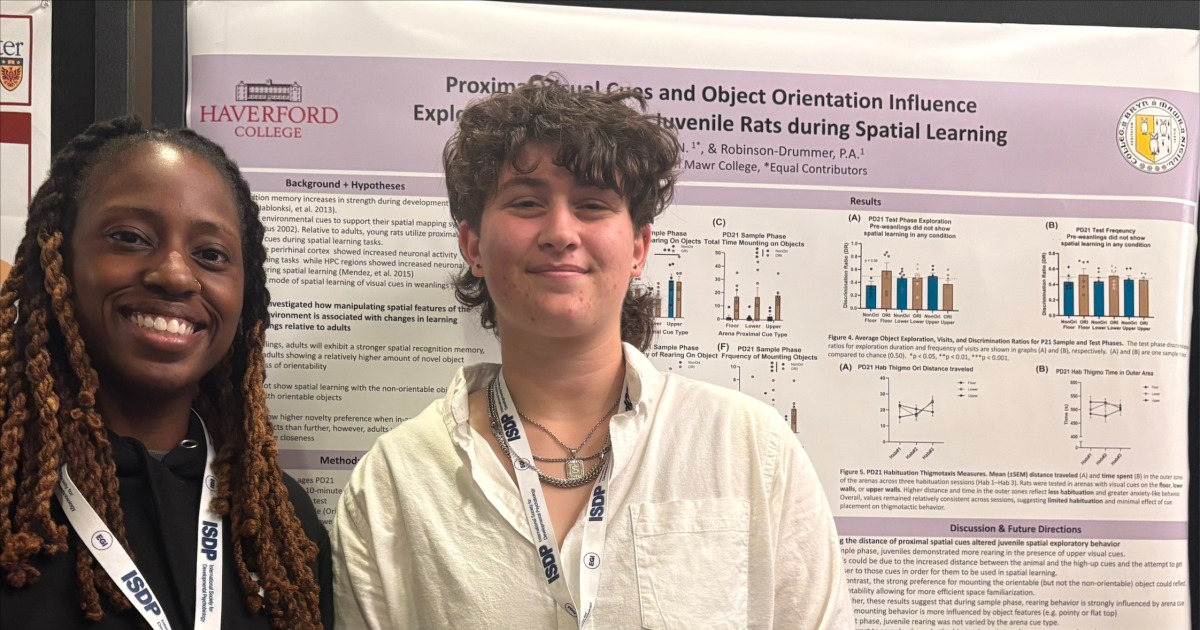 In mid-November, Bryn Mawr tennis student-athlete Sophie Fenster '26 took her passion for neuroscience across the country, presenting her original research at the annual meeting of the International Society for Developmental Psychobiology in San Diego, Calif. One of only a handful of undergraduate students in attendance, Fenster shared the results of a year-long project she conducted under the mentorship of Assistant Professor of Neuroscience at Haverford Patrese Robinson-Drummer, whose introductory neuroscience course first sparked her interest in the field. Read more about Fenster's research in the following Q&A.