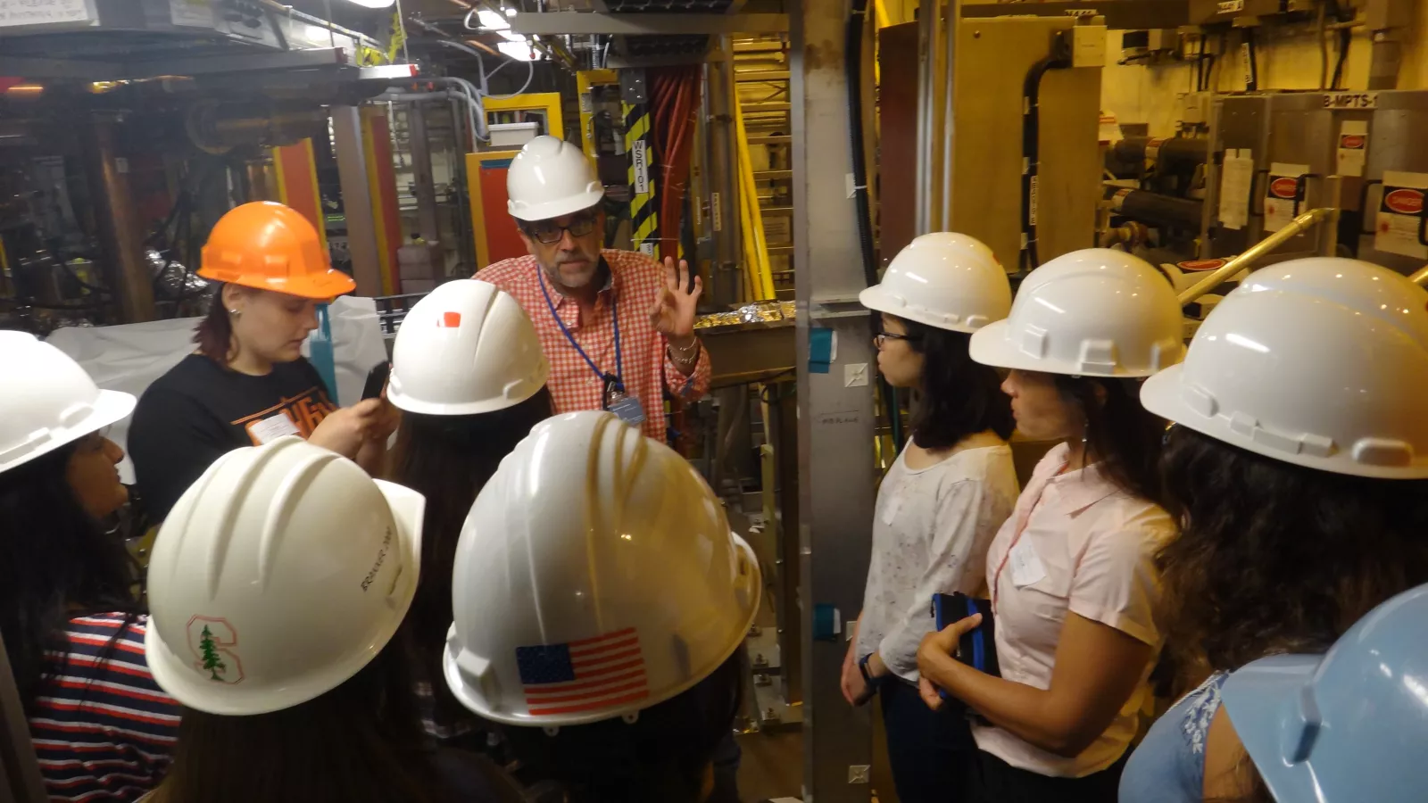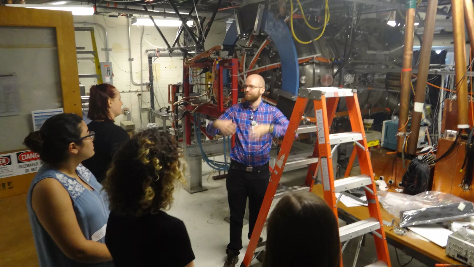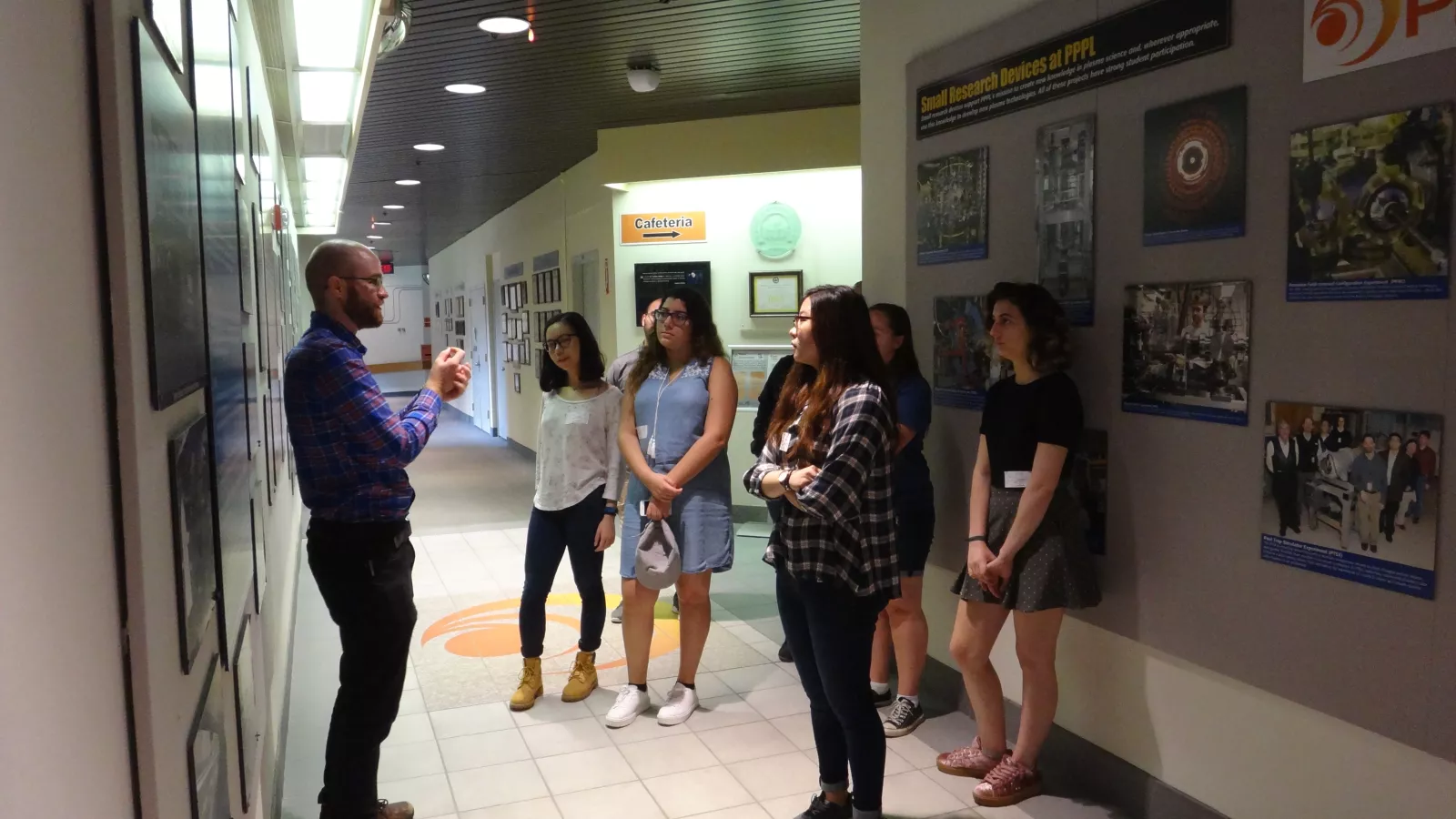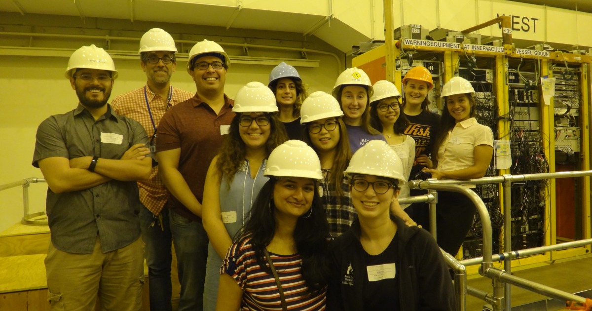 A group of Bryn Mawr summer research students took a break from lab to get a guide tour of the Princeton Plasma Physics Laboratory (PPPL). The group saw the major fusion plasma facility, NSTX, which is currently being upgraded to push plasma parameters even closer to igniting a burning fusion plasma.